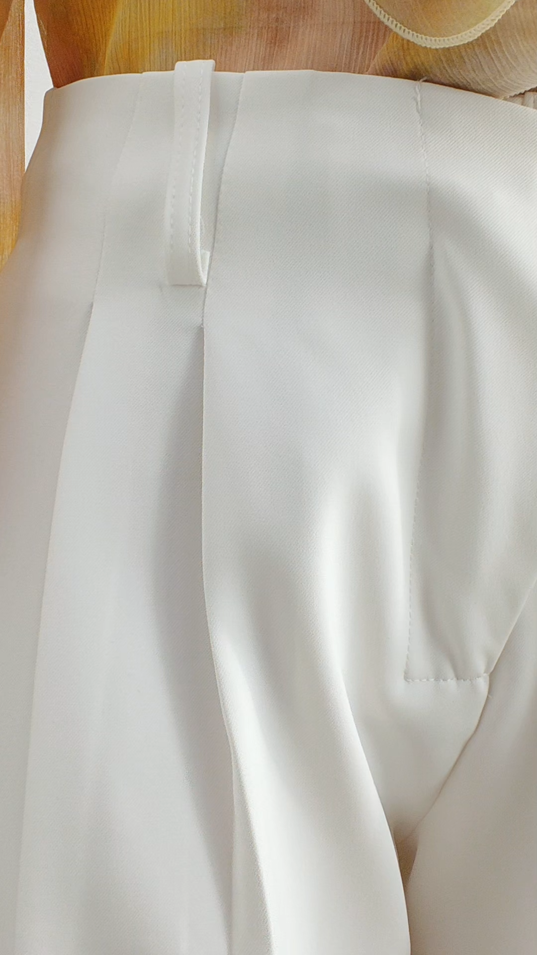 This crisp white pair of trousers features a high waist, wrap-front pleats, and a wide-leg cropped silhouette. Non-stretch fabric offers a structured fit, ideal for smart-casual and office styling.
