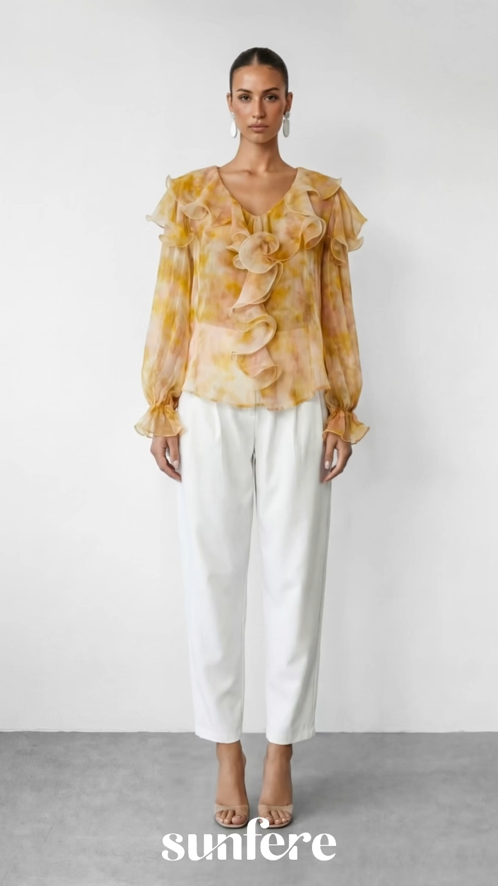 Design: high waist, wrap front, pleated, wide leg, cropped