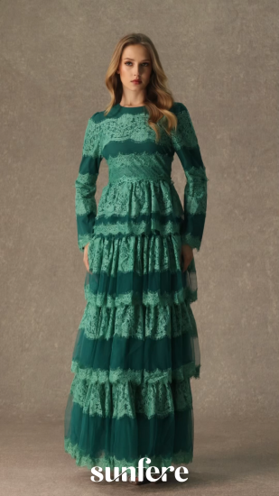 Turn heads in this green tiered lace design from our curated collection of maxi dresses, offering refined texture and graceful movement for weddings, formal dinners, and elegant evenings when effortless sophistication matters.