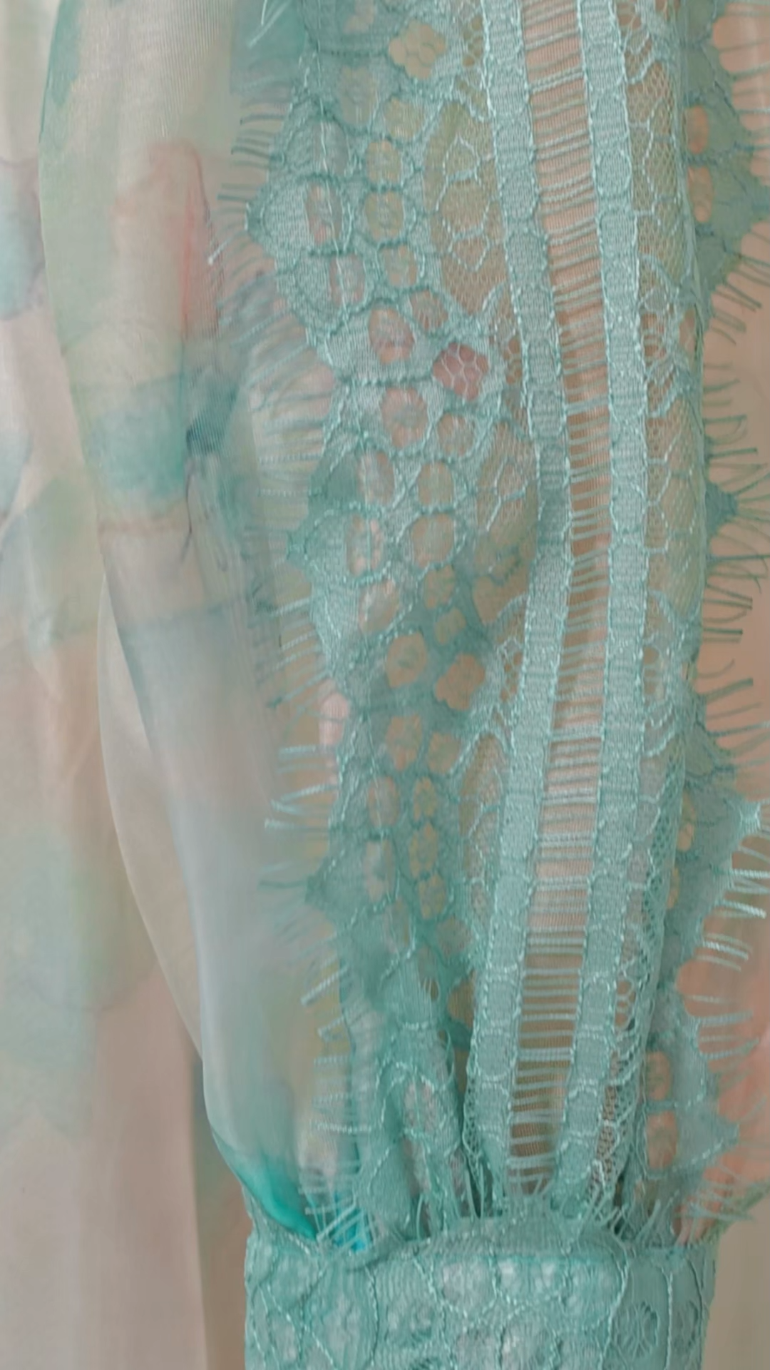 This dreamy mint maxi dress, with delicate butterfly print and ruffled tiers, is perfect for garden parties, spring weddings, and daytime events, radiating soft romantic charm.
