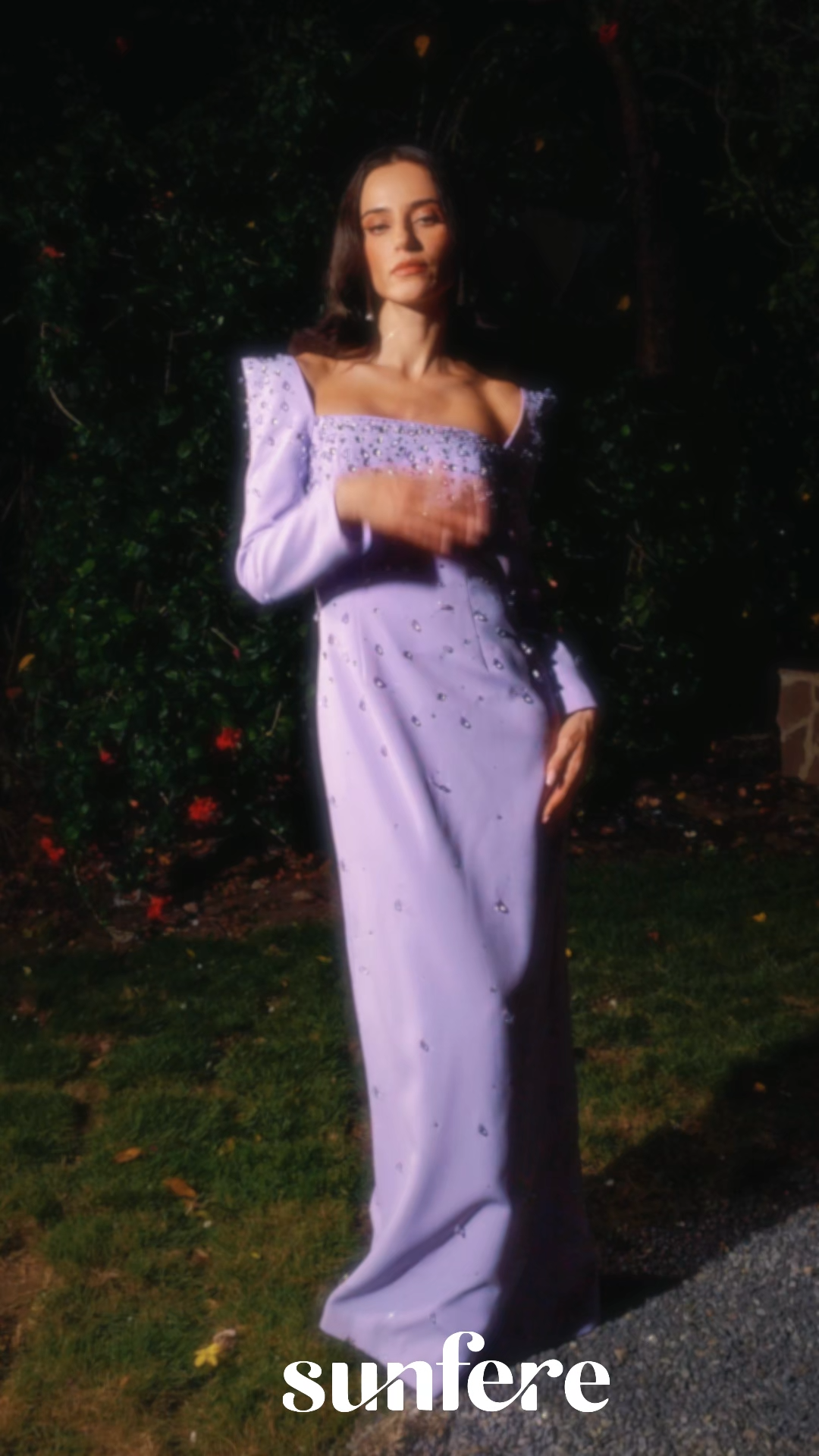 This crystal-embellished gown redefines formal maxi dresses with its square neckline, puff sleeves, and column silhouette. Crafted from slightly stretchy terylene, it ensures a flattering fit with graceful movement. Perfect for women seeking formal wedding guest dresses, it balances refined sparkle and timeless elegance—ideal for black-tie events, galas, or sophisticated evening occasions.